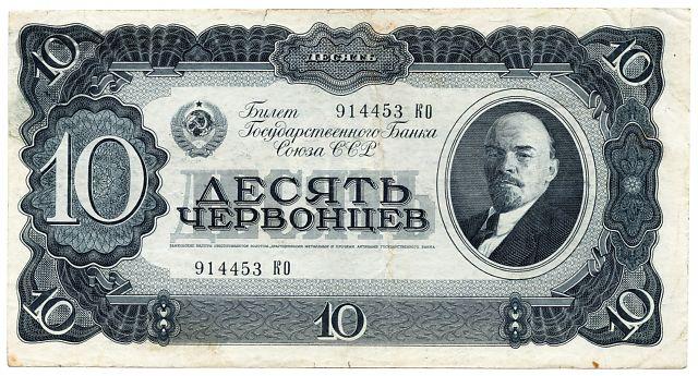 اسکناس 10 چروونتس (100 روبل) اتحاد جماهیر شوروی 1937 (EF)
