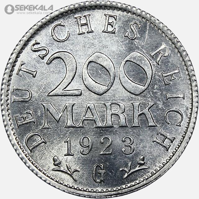 سکه 200 مارک کمیاب آلمان 1923 G (جمهوری آلمان وایمار)(UNC)