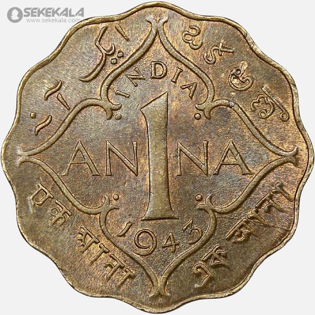 سکه 1 آنه هند مستعمره بریتانیا 1943 (جرج ششم)(UNC)