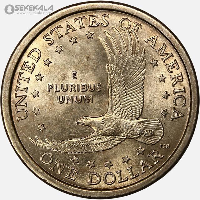 چهره اصلی این سکه، ساکاگاویا (Sacagawea)، زن بومی قبیله شوشون است که در اوایل قرن ۱۹ میلادی، نقش راهنما و مترجم را در سفر معروف اکتشافی «لوییس و کلارک» ایفا کرد. او تنها زن حاضر در آن سفر بود و با وجود همراه داشتن نوزاد خردسالش، در یکی از دشوارترین سفرهای زمینی تاریخ آمریکا، با گروه همراه شد.