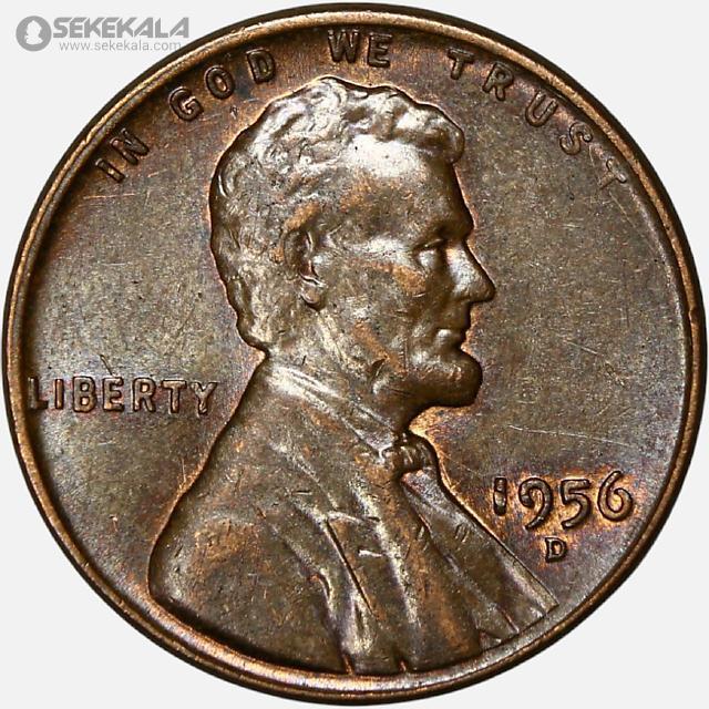 سکه 1 سنت قدیمی لینکلن آمریکا 1956 D (کیفیت AU)
