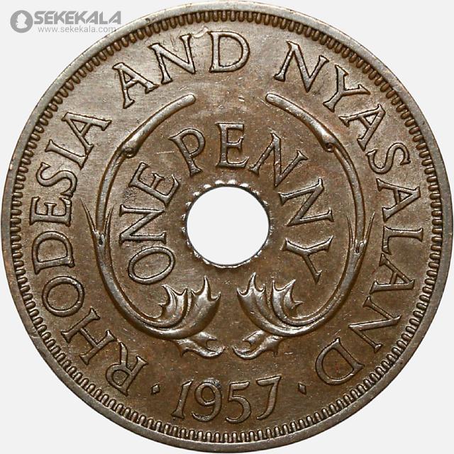 سکه 1 پنی رودزیا مستعمره بریتانیا 1957 (ملکه الیزابت)(بسیار کمیاب)