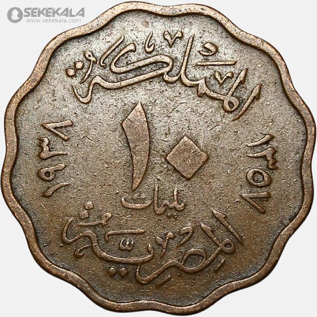 سکه 10 ملیم کمیاب مصر 1938 (ملک فاروق)