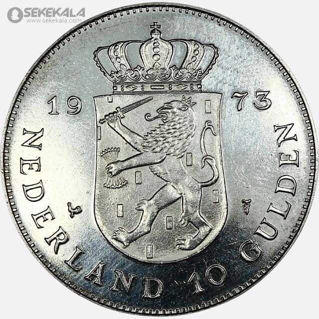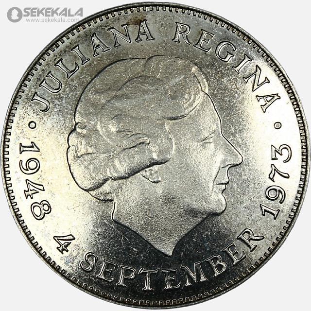 سکه 10 گولدن نقره یادبودی هلند 1973 (25 امین سالگرد سلطنت ملکه جولیانا)(AU)