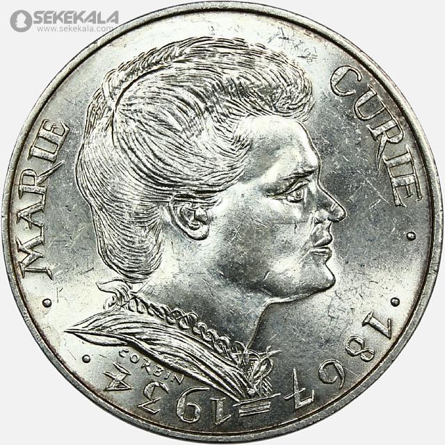 سکه 100 فرانک نقره یادبودی فرانسه 1984 (+AU) (پنجاهمین سالگرد درگذشت ماری کوری)