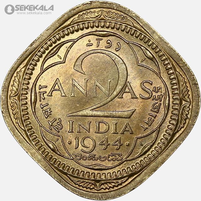 سکه 2 آنه هند مستعمره بریتانیا 1944 (جرج ششم)(+AU)